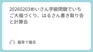 ただの日記 20260203めいさん学級閉鎖でいちご大福づくり、はるさん書き取り会と計算会