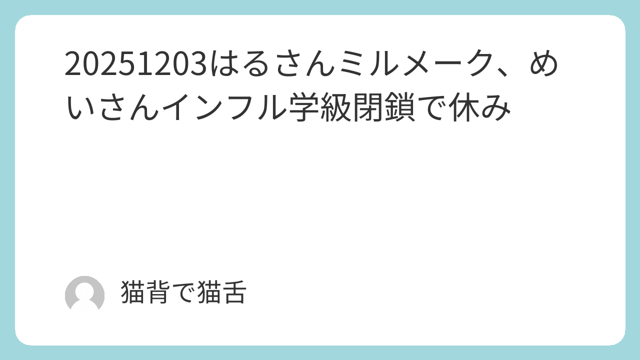 20251203はるさんミルメーク、めいさんインフル学級閉鎖で休み