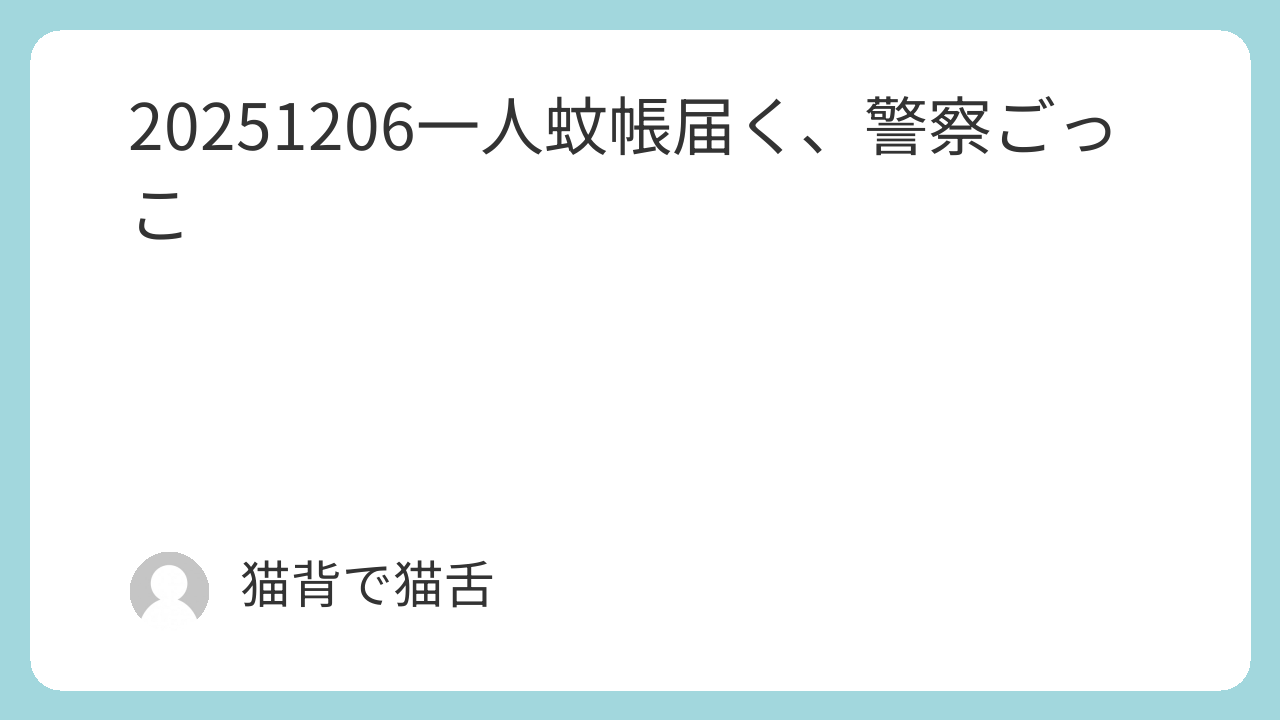 20251206一人蚊帳届く、警察ごっこ