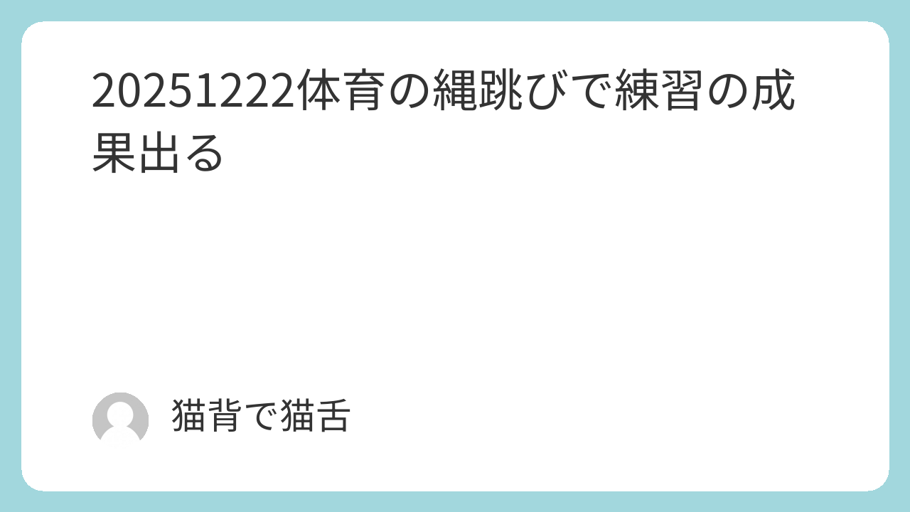大縄の8の字跳びも出来た。家での練習の成果が出た。