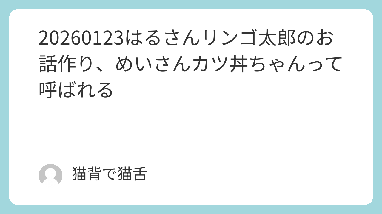 20260123はるさんリンゴ太郎のお話作り、めいさんカツ丼ちゃんって呼ばれる