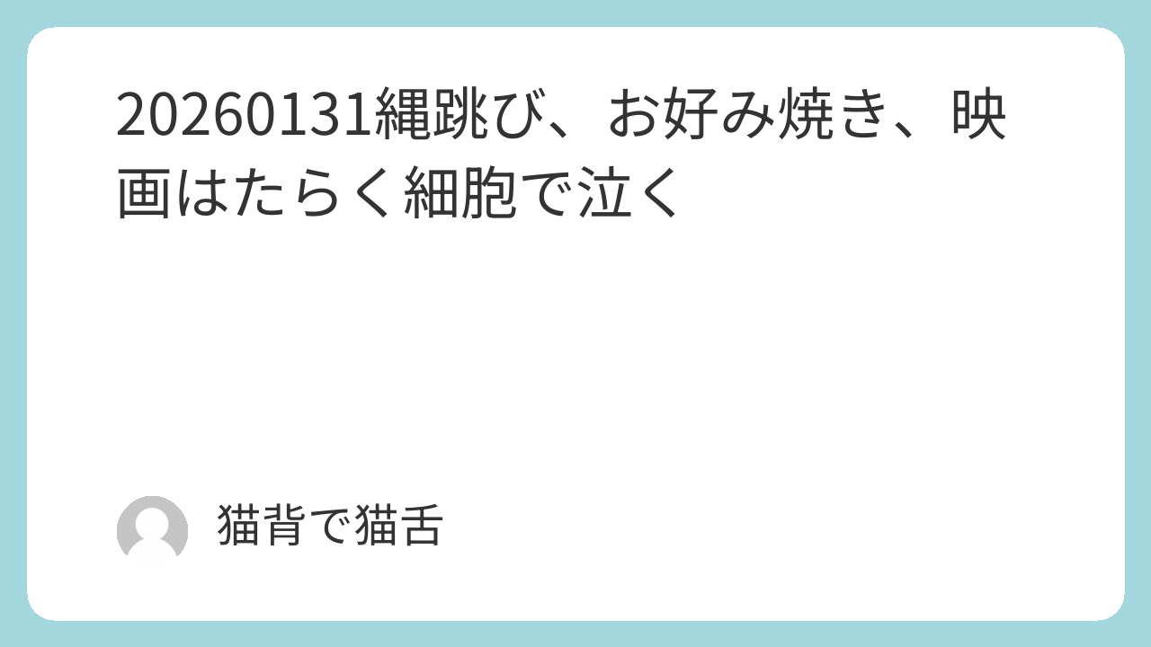 20260131縄跳び、お好み焼き、映画はたらく細胞で泣く