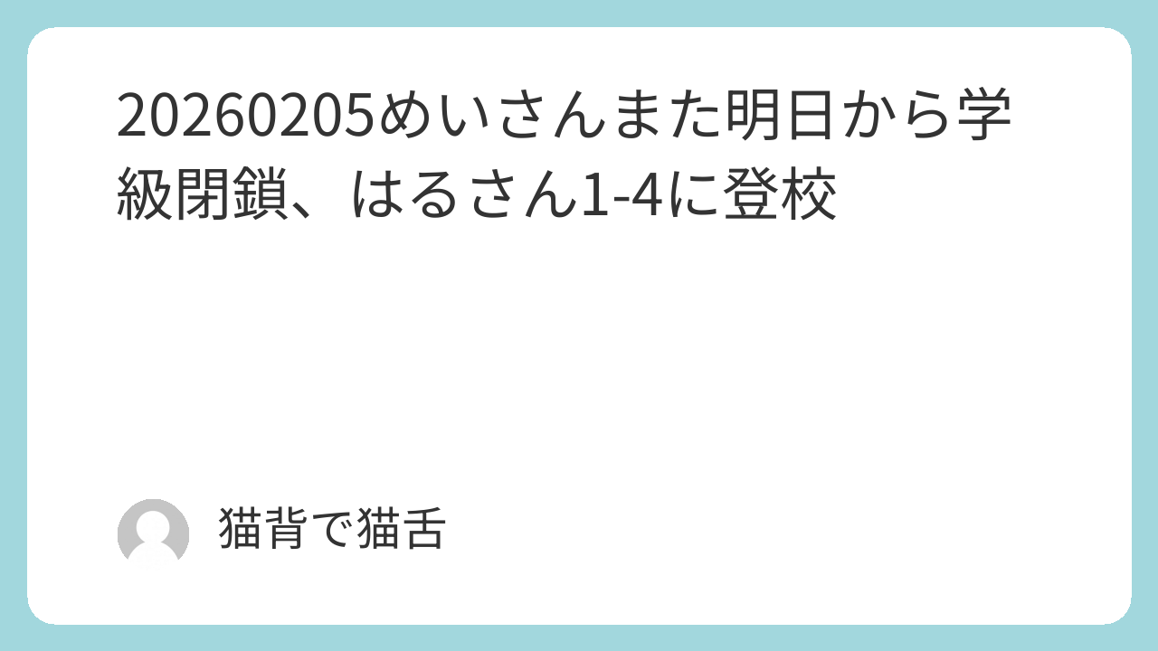 めいさんのクラスがまた学級閉鎖になった。今日は9人休み。