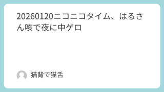 20260120ニコニコタイム、はるさん咳で夜に中ゲロ