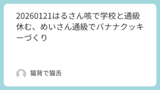 20260121はるさん咳で学校と通級休む、めいさん通級でバナナクッキーづくり